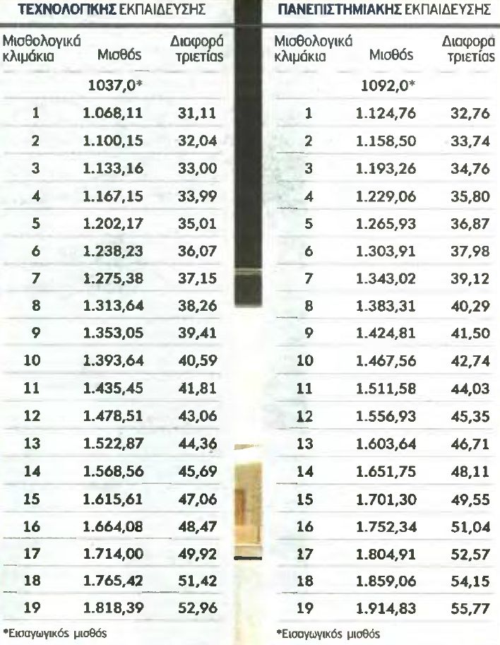 μισθολογικό κλιμάκιο, με βάση το βασικο σενάριο του νέου μισθολογίου που